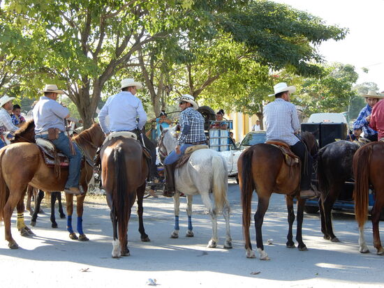 Irgend etwas wird hier gefeiert! Die Reiter sind sehr stolz, es wird musiziert, gelacht und getrunken. Immer wieder stehen sie an einer Strassenkreuzung still. Was genau gefeiert wurde, entzieht sich allerdings unserer Kenntnis.