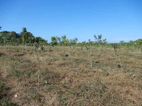 Vieles ist Handarbeit und wird mit der Machete erledigt! Die Zwischenräume zwischen den einzelnen Baumreihen sind so festgelegt, dass sie auch maschinell bearbeitet werden können.
