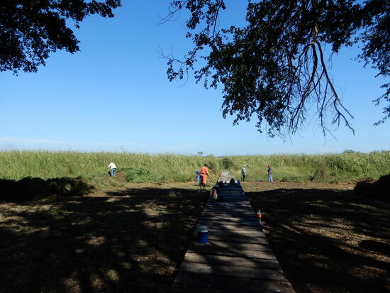 Zwischenzeitlich sind wir bei der Lagune eingetroffen und hier geht die Post ab, ein neues Stück überwuchertes Brachland wird von den fleissigen Arbeitern gerodet.