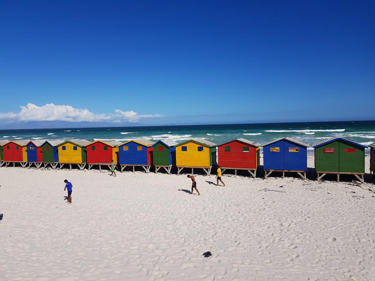 Unsere zweite Location in Kapstadt am Muizenberg Beach, das bekannt ist für seine bunten Strandhäuschen.