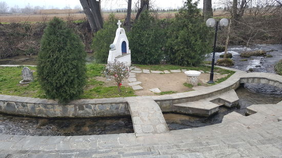 In dem vorbeifließenden Bach soll der Apostel erstmals einen Menschen in Europa getauft haben.