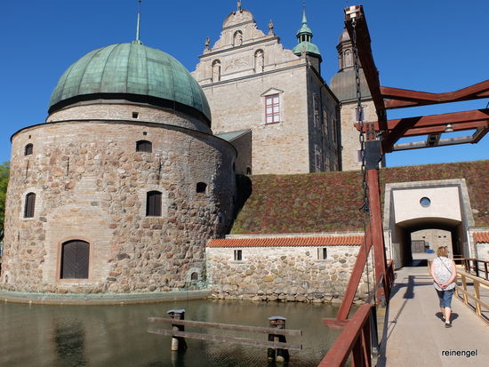 Eine Lieblingsbeschäftigung vieler Schweden: An Wochenenden so wie heute, fahren stolze Schweden mit ihren fahrtüchtigen und herausgeputzten Oldtimern sehenswerte Orte an und treffen sich dort zum Benzinplausch. Heute haben sie sich das sehr schön erhaltene Wasserschloss von Vadstena am Vättern als Ziel herausgesucht.
