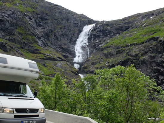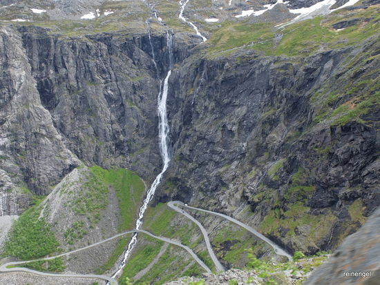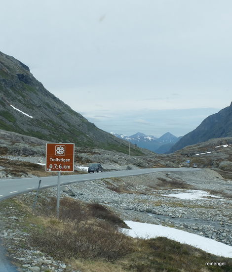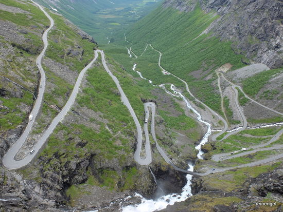 Wer extreme Straßen liebt, muss hier hin, muss diese Strecke gesehen und gefahren haben. Unvergleichlich, unglaublich, unvorstellbar, eine Straße in die steile Felswand am Talende hinein zu sprengen. Aber es hat sich wohl gelohnt, wenn man die vielen Besucher und Fahrzeuge aller Art sieht, die sich hoch oder runter "quälen". Weitere Infos und super Fotos, die den gesamten Streckenverlauf zwischen Langvatnet und Åndalsnes dokumentieren gibt es auf der Seite des norwegischen Straßenamtes: https://www.nasjonaleturistveger.no/de/routen/geiranger-trollstigen.