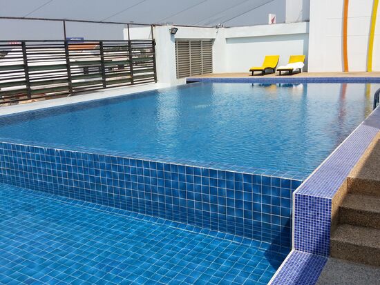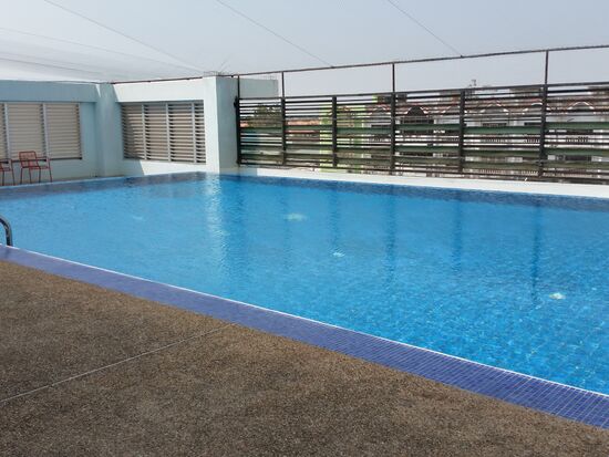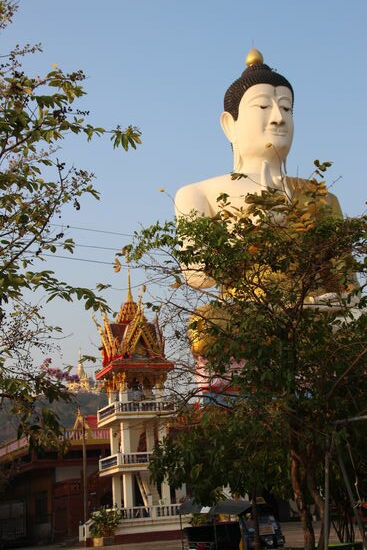 Der Pool gehört wieder mir und ich genieße ihn ausgiebig. Solange die Liegestühle noch im Schatten stehen nutze ich dies und lese. Später wechsle ich an ein kleines Tischchen das überdacht ist und schreibe am Tagebuch. Gegen 16:00 bitte ich an der Rezeption, mir ein Tucktuck zu bestellen. Ganz ohne Sightseeing will ich ja auch nicht. Ich habe mir überlegt, mich zum Aussichtsturm fahren zu lassen, und dann zurück zu laufen. Unterwegs will ich mir dann noch einen Tempel mit einem großen Buddha ansehen, der ebenfalls hier vom Hotel aus auf halber Höhe zu sehen ist.