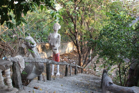 Wir fahren los und ich bin gleich einmal überrascht, dass wir gar nicht Richtung Stadt fahren, sondern hinter den Hügeln quasi um die Stadt herum. Der ist gleich einmal ungewöhnlich und recht hübsch. Beim nächsten ist der eigentlich wichtige Teil gar nicht als solcher für mich zu erkennen. Insgesamt ist es eine sehr große Anlage, an die wie so oft auch eine Schule angeschlossen ist. Die religiösen Bauanteile sind hier eher gering.