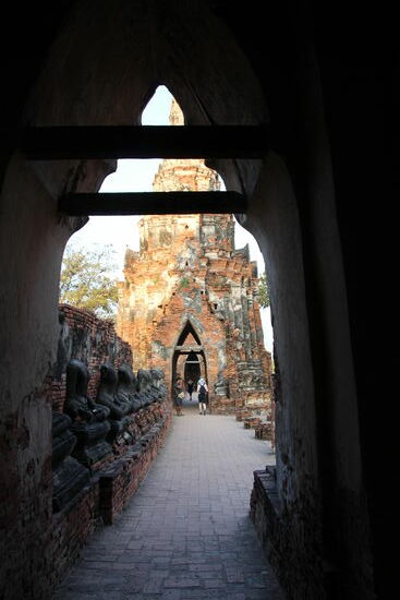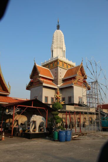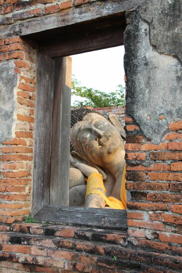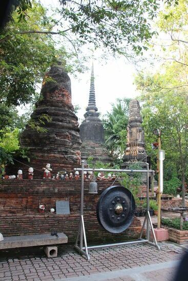 Für den zweiten Tempel, den Wat Phutthai Sawan haben wir keinen Eintritt zahlen müssen. Hier gibt es eine schöne alte Stupa, einen liegenden Buddha und eine sehr elegante vermutlich recht neue Stupa.
