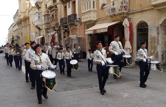 Zuerst zum zentralen Busbahnhof in Bugibba, von dort mit einer der von dort fahrenden Linien direkt zum Busbahnhof nach Valletta......gerade rechtzeitig, um einen Umzug verschiedener Scoutgruppen jeden Alters, beim Marsch mit Musik durch Valletta zu begleiten. Was genau es war, ich habs nicht rausgefunden.