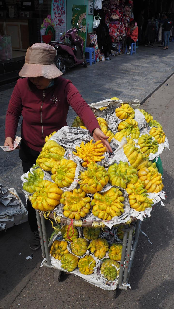 Wir quälen uns in der Rush Hour durch den Verkehr zum Dong Xuan Market – die Vorbereitungen auf Chinese New Year (15./16.2.) sind voll im Gang.
