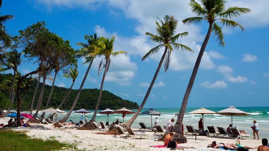 An unserem vorletzten Tag auf Phu Quoc fahren wir mit dem Roller nochmals zu den Südstränden. Zuerst geht’s über eine schmale, beinahe unbefahrbare Stichstraße zum Khem Beach… hier finden wir noch ein kleines Stück Ursprünglichkeit mit Einheimischen – der Bau von Resorts hat bereits auch hier begonnen, daher ist die Idylle wahrscheinlich auch am Khem Beach bald Vergangenheit. Wir genießen das Treiben am Strand.
