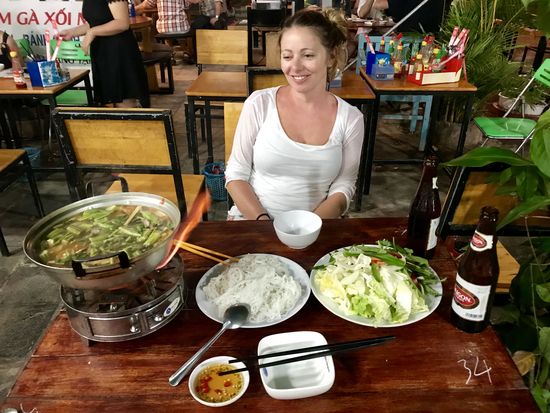 Am Abend probieren wir das typische Gericht „Seafood Hotpot“ – unglaublich lecker und was da alles an „Grünzeug“ reinkommt… zB Morning Glory, Thai Basilikum, Vietnam Minze,…