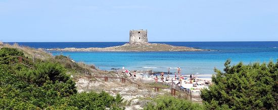 Am späten Vormittag waren wir in Capo del Falcone angekommen, wunderbare Sicht auf die kleine Badebucht La Pelosa, mit einem Sarazenenturm auf der vorgelagerten Insel. Die Spiaggia La Pelosa dient wegen der je nach Sonneneinstrahlung unglaublichen Farben häufig als Kulisse für Werbe- und Modeaufnahmen. Die Bucht war recht voll mit Badegästen, hatten wir bisher noch nicht so gesehen.