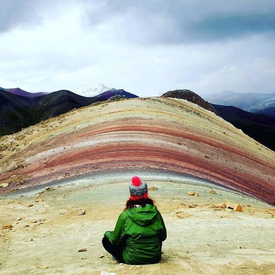 Ich habe mich dazu entschieden, nicht den bekannten Regenbogenberg "Vicunha" zu besuchen, zu dem inzwischen angeblich täglich zwischen 700 und 1000 Touristen wandern sollen. Stattdessen gab ich Palcoyo eine Chance und habe es nicht bereut. Hier erwartete mich zudem nicht nur ein Regenbogenberg, sondern gleich drei. Und ich musste sie mir auch nur mit 30 Menschen teilen. Primär habe ich mich aber dazu entschieden, da ich noch immer krank bin und den Weg zum Vincunha nicht geschafft hätte (3 Std. oneway 1000 Höhenmeter vs. 60 Min. 150 Höhenmeter). Unserem Guide zufolge entsteht die rote Farbe durch Eisen, die grüne durch Kupfer und gelb durch Schwefel. Wir befinden uns hler auf 4900m Höhe, lasst euch verzaubern