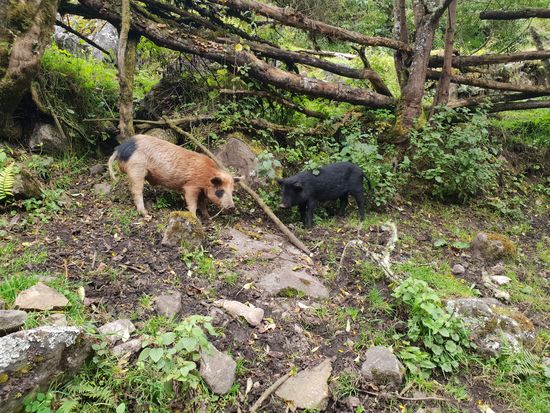 Nach dem Mittagessen erwischte uns ein wenig Regen und die Vegetation veränderte sich. Von Steinen und Geröll tauchten wir in den Dschungel ab und liefen weiter bergab bis zu unserem Camp auf 2850m (also insgesamt fast 2000 Höhenmeter bergab an diesem Tag).