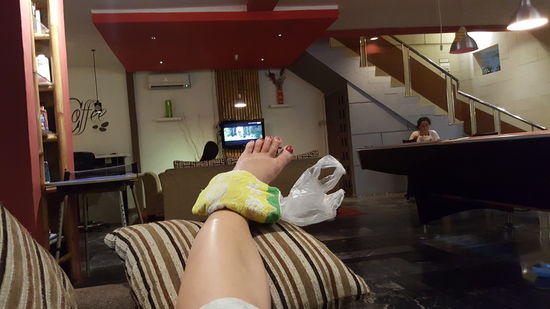 Zum Übernachtungspreis gehört auch ein kleines Frühstück. Ich gehe aber erstmal zur Apotheke und besorge mir eine Kühlcreme. Ansonsten ist der Knöchel dick, aber die Schmerzen halten sich in Grenzen.
