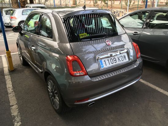 Es ist eisig kalt in Deutschland und ich bin froh, dass unser RX keine Mucken macht. Als Jana ankommt, starten wir gegen 9.00 Richtung Düsseldorf Airport, parken wie gewohnt bei easy-airport-parking. Die 800 m werden eisig kalt trotz Wollmütze. Das Einchecken geht verhältnismäßig zügig und so bleibt noch Zeit für den ortsüblichen Kaffee mit unseren hausgemachten Brötchen. Der Kaffee ist inzwischen schon wieder teurer geworden – 4,40 € ist allmählich unverschämt. Selbst das Boarding klappt, doch da die Maschine von Tui-fly auf einem Außenplatz parkt, müssen wir den Bus nehmen, der minutenlang mit offenen Türen und enormen Durchzug Eiseskälte verbreitet. Wider Erwarten ist selbst der Start fast pünktlich und wir erreichen nach teilweise unruhigen Passagen um 16.30 Uhr Ortszeit nach knapp 4,5 Stunden Flug mit einer Boeing 737-800 Maschine Teneriffa Süd. Da es ewig am Gepäckband dauert, kümmere ich schon mal um den Wagen bei Thrifty/Hertz. Der Typ will mir mal wieder ein größeres Auto andrehen, dabei will ich durchaus aus Nostalgiegründen den Fiat 500 haben.