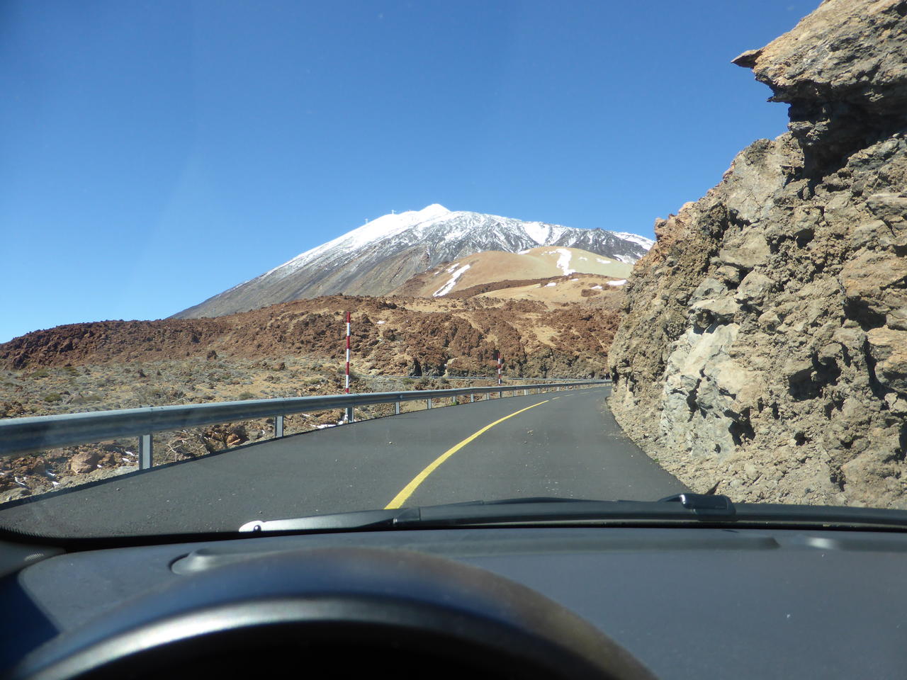 An der Sperrstelle angekommen, ist sie nun offen und wir können hoch. Doch bald ist Stau, da die Bauarbeiten durch eine Ampel geregelt werden, die recht lange Phasen hat, so dass einige Fahrzeuge sogar wenden. Wie eine Prozession zieht sich die Schlange auf ca. 2000m hoch, wo man in Portillo nun endlich in die Caldera schauen könnte, wenn man denn an den zahlreichen Parkplätzen noch ein Plätzchen fände.