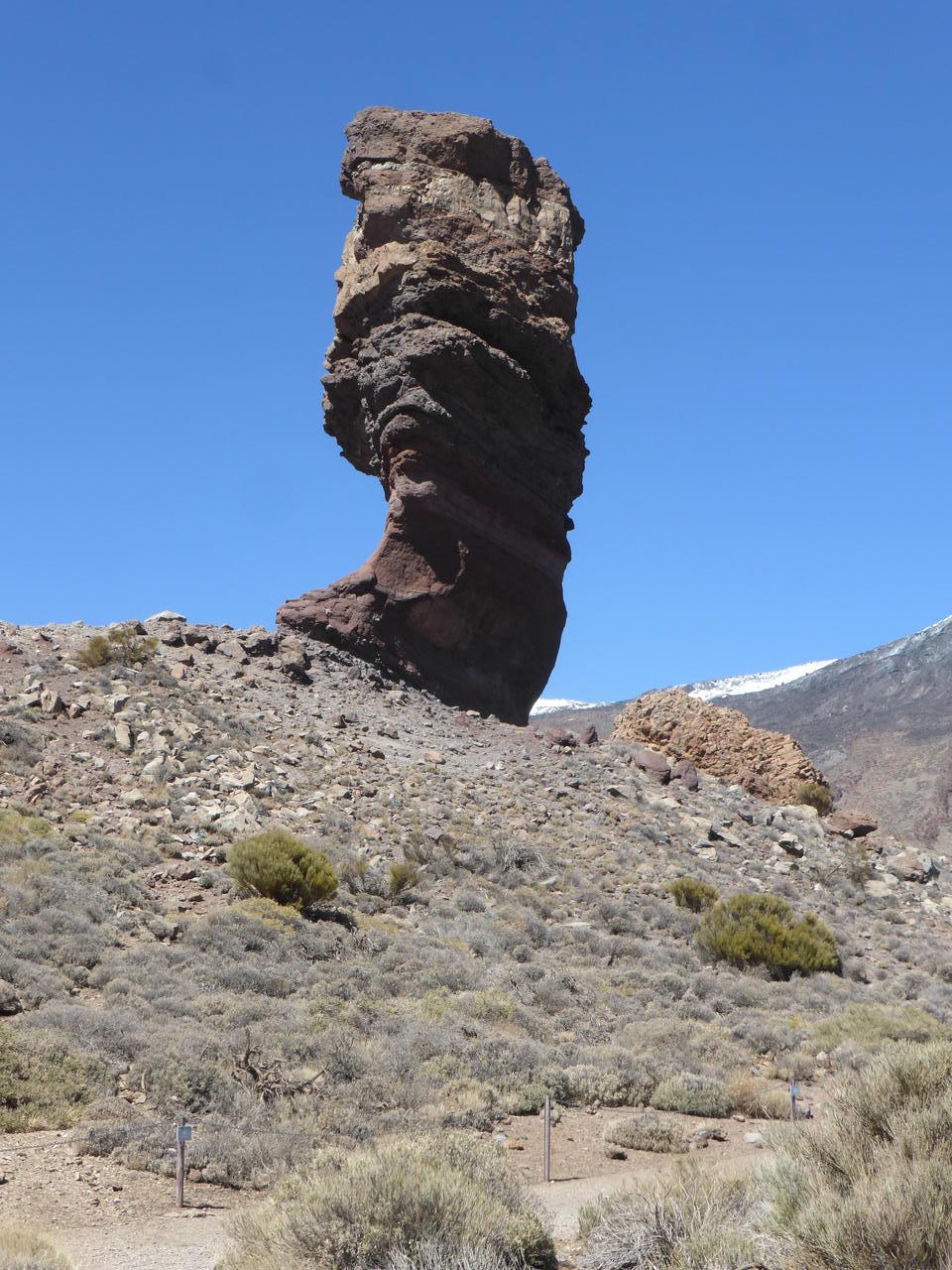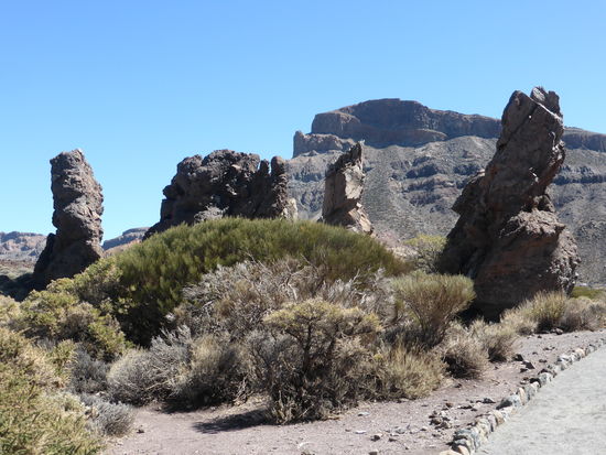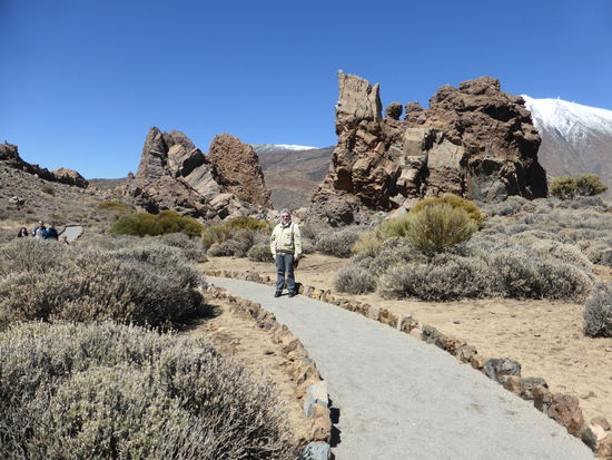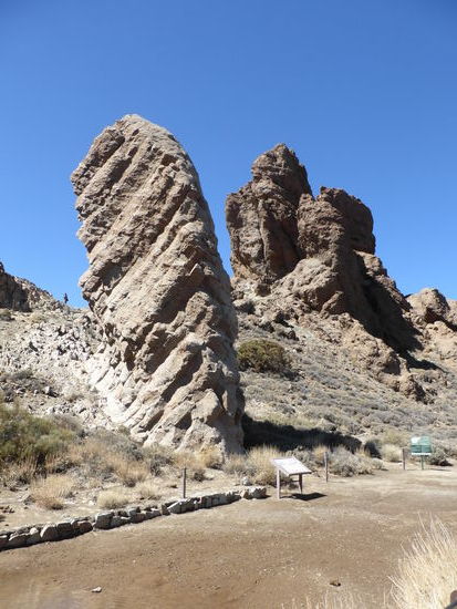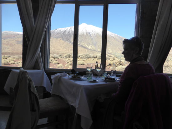 Auch der Paradorparkplatz ist hoffnungslos überfüllt, so dass meine Frau Ulrike fast schon gewillt ist auf unser Essen zu verzichten. Schließlich finde ich einen winzigen Platz, in den unser Kleinwagen so gerade hineinpaßt – ‚eigentlich soll man hier fotografieren‘. Von dort laufen wir dann entlang der Straße zum Parador. Das Restaurant öffnet erst um 13.30 Uhr. Daher können wir schon einen kleinen Rundgang am Roque Garcia machen.