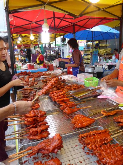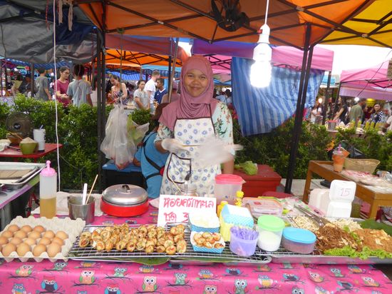 In den Dörfern um Khoa Lak gab es fast immer einen Markt mit köstlichen Essensstandln. Wir haben das schon so oft gesehen, aber immer wieder kommen wir aus den Staunen nicht heraus. Appetitlich wird alles gerichtet, gekocht gegrillt, ...