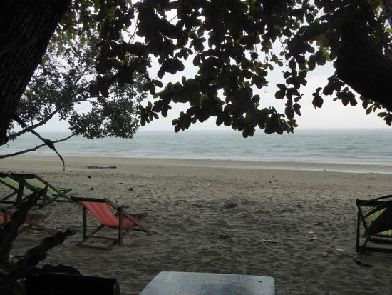 Das war ein kurzes Gastspiel auf Koh Chang. Die Überfahrt  mit der  Fähre  dauerte ca. eine halbe Stunde und bei strahlendem Sonnenschein fuhren wir mit einem Songtow zum White Sand Beach. Mit uns waren 3 junge Saudis mit einem Thaimädchen im Taxi. Sie kamen direkt von Pattaya, waren volle knüll, wussten nicht wo sie aussteigen sollen und hatten eine große Eisbox mit Fleisch und Fisch für ein Beach-Barbeque dabei. Sie unterhielten uns alle mit ihren lustigen Sprüchen. Ja, ja, wenn sie losgelassen!