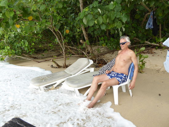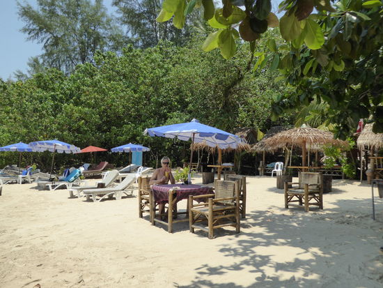 Sandra gab uns den Tipp mit dem schönen White Sand Beach. Hier fanden wir ein abgeschiedenes Plätzchen zum Relaxen. Liegestühle für "free", etwas zum Essen und Trinken gab es auch und eine Thai-Massage der alten Schule. Die Ladies liefen ziemlich heftig unseren Rücken rauf und runter!
