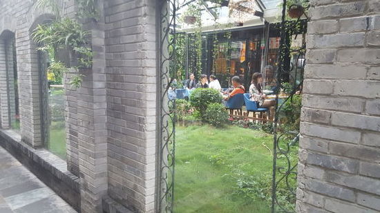 Das Teehaus ist 200 Jahre alt und die alte Dame, die hier bedient, passt hier gut rein. Der Innenhof sieht gemütlich aus