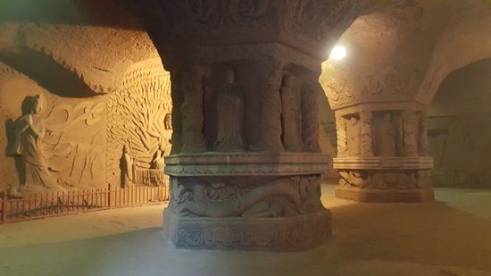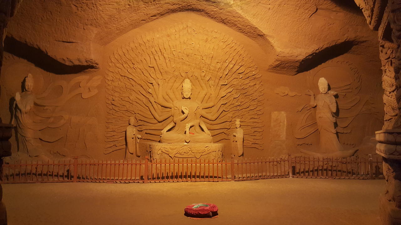 Wir besichtigen einige Hallen und Höhlen mit Buddhas