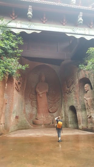 Das ist der „Giant Buddha“ er ist 71m hoch und hier muss nochmal extra Eintritt gezahlt werden.Er sitzt, in eine Felswand geschlagen über dem Zusammenfluss von 3 Flüssen und würde von dem Mönch Haitong mit dem Bau 713 n.Chr. begonnen und erst 90 Jahre nach seinem Tod vollendet