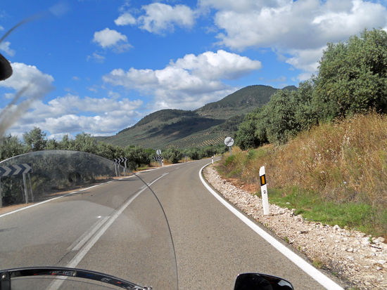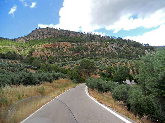 Unsere Route: A 310 bis La Puerta de Segura. A 317 Rihornos, Cortijos Nuevos, Canada Morales, vorbei an dem traumhaft schönen Embalse del Tranco de Beas bis Villanueva de Arzobispo. Die Landschaftsbilder wechseln ständig, kaum Verkehr, so können wir die Fahrt beide genießen.