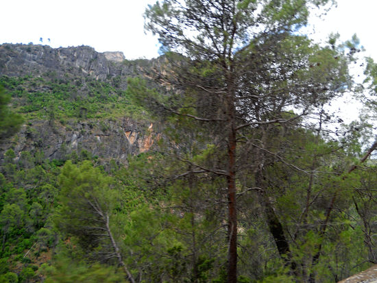 Wir sind hier wieder im großen Naturpark Sierras de Cazorla, Segura y Las Villas unterwegs. Grün bewachsene rote Felsen, herrlich ist das anzusehen. Allerdings finden sich hier auch sehr viele verlassene Häuser, die zum Verkauf stehen.