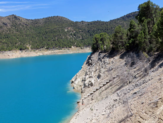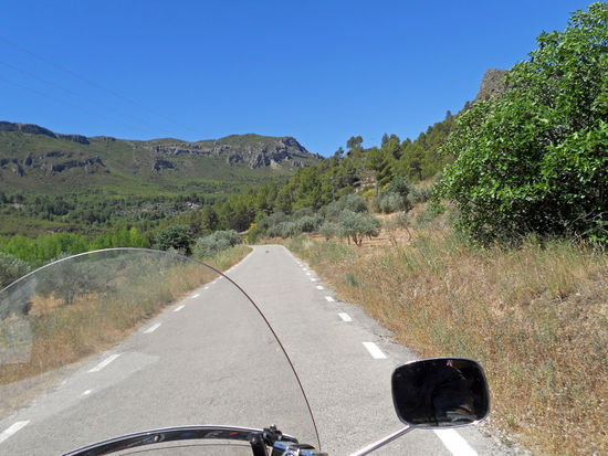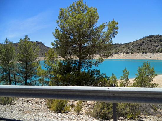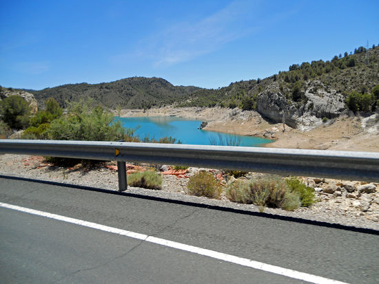 Nachdem die Geschäfte wieder geöffnet haben nach der Siesta, kaufen wir noch einige Sachen ein. Weiter zurück zur Staumauer des Embalse de la Fuensanta. Weiter CM 3206, CM 412, über Puerto del Pino, 1.100 m, CM 3204, A 310 bis Siles.