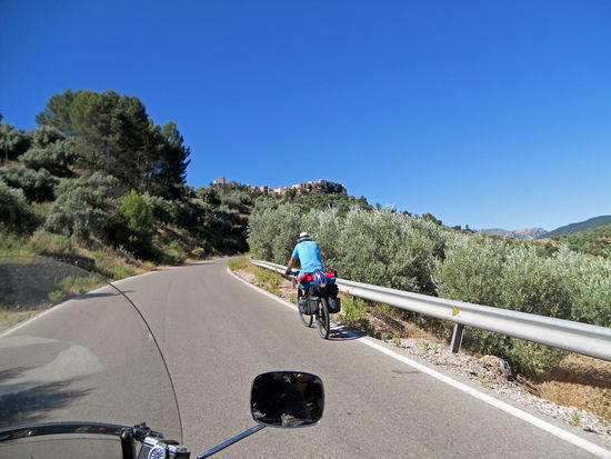 Zurück über Cortijos Nuevos, die alten Leute, die dort auf den Bänken sitzen, winken, sie kennen unser Motorrad und uns.
