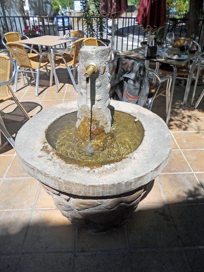 Wir erhalten zwei kostenlose Tapas, das ist so viel, dass es für Rolf wie eine Mahlzeit ist. Ich bestelle mit Tostada Atun (Thunfisch), dazu Wasser, Wein, Tonic = 7,50 Euro. Wir halten es unter den schattigen Bäumen mit Wind lange aus.