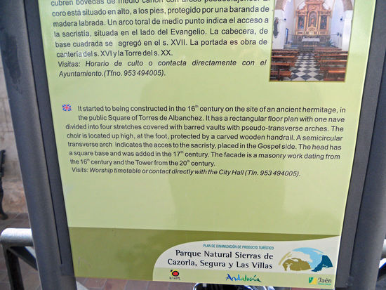 In Torres selbst halten wir an der Plaza, direkt vor der Kirche. Die Iglesia parroquial de Nuestra Señora de la Presentación stammt aus dem 16. Jh.. Leider wie so oft geschlossen, so dass wir sie nur von außen anschauen können.