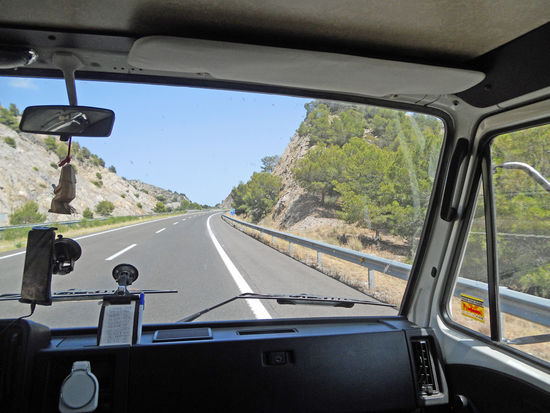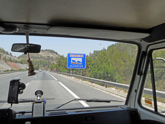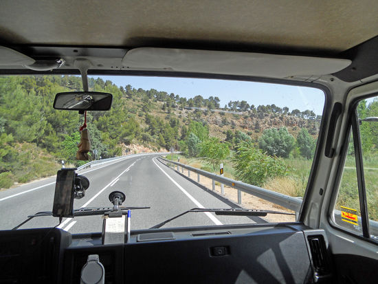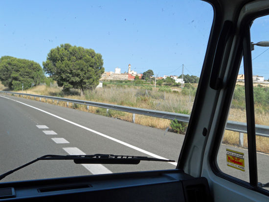 A 31 Richtung Valencia. 12.35 Uhr Chincilla de Monte-Aragon – Bild. Über Puerto El Blanco, 898 m. Kurze Pause an einer Tankstelle, 2 Tonic = 3,60 Euro. Sauteuer. Weiterfahrt 13.20 Uhr.