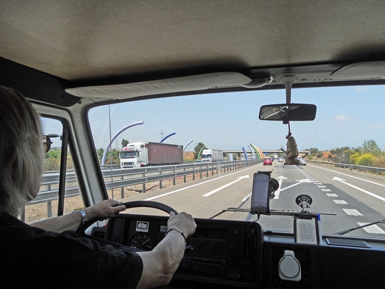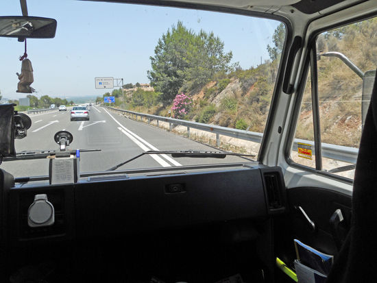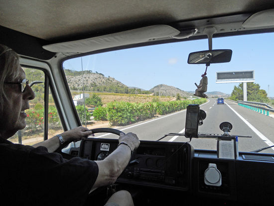 16.45 Uhr Morella-Vinaros. 17 Uhr im Ebro-Delta. Hier und wieder erhascht man einen Blick auf das Meer. Es herrscht kaum Verkehr, so dass das Fahren für Rolf nicht anstrengend ist.