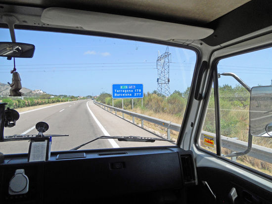 Heute wollen wir es bis Matero, nach Barcelona, schaffen. Tarragona um 18 Uhr. 18.25 Uhr erreichen wir die Provinz Barcelona. Vilafranca del Penedas – hier gibt es viele Weinberge.