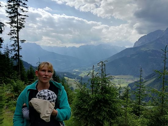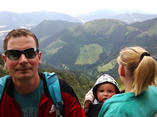 So, Servus und griaß eich. Die ersten zwei Wochen sind so rasend schnell vergangen, wir konnten und wollten erstmal nichts in den Reisebericht stellen. Sondern erstmal ankommen und die Hindernisse überwinden, die wir die letzten Tage hatten. Die Anreise verlief super, 18 Uhr los und 01:20 Uhr waren wir am Ziel. Am nächsten Morgen der Schreck, riesiger Fleck unter dem Auto. Erste Diagnose Zylinderkopfdichtung hat sich nicht bestätigt. Wäre auch richtig teuer geworden. Egal, Termin in der Werkstatt war am 13.6 und somit hatten wir noch 12 Tage ohne Auto vor uns. Es ging schneller als Gedacht zum Wandern und so waren es jeden Tag etwa 5-10 km Berg hoch und Berg runter. Mittlerweile sind wir aber fahrbereit und waren in Bischofshofen an der Ski-Sprungschanze. Natürlich wollten wir alle Treppenstufen bis ganz nach oben. Der Kleine fand´s amüsant, wurde ja auch getragen. Heute dann nun ging es auf 1834 Meter,zur Bischlinghöhe. Kennen wir In und Auswendig, aber nur mit Schnee. Bis auf einige Paragleiter war nichts los. So genossen wir die himmliche Ruhe und diesen unbeschreiblichen Blick über das Bergpanorama. Runter ging es 8.35 km und brauchten dafür 2:33 Stunden. An wunderschönen Orten und Almhütten vorbei (mit Kaiserschmarrn und kühlen Getränken). Für Anton war das offenbar nichts, er quengelte fast die ganze Zeit, aber da er immer noch nicht läuft musste er da durch. Temperatur am Gipfel waren 10,5 Grad und unten angekommen 21,5 Grad. Die Temperatur / Wetter bekommt uns ohnehin allen sehr gut. Tagsüber um die 23-25 Grad und Nachts um die 10, hatten die letzten beiden Nächte 7 Grad. Das geht schon bald an Winter. Alex vermisst auch ständig die Skifahrer und vor allem den Schnee. Aber den wird er noch bekommen, spätestens am Groß Glockner oder beim Aufstieg zur Werfener Hütte auf 1960m. Dort liegt noch Restschnee vom letzten Winter. Dann aber ohne Kind und Mutter. Was wir noch feststellen und wo wirklich aufpassen müssen, ist, dass Österreich die Nr.1 im Alkoholkonsum europaweit ist. Mehr wollen wir hier dazu nicht schreiben. Noch fühlt es sich an wie ein normaler Urlaub. Das Gefühl wird sich bestimmt nach 4-6 Wochen ändern. Wir haben aber auch noch soviel vor, dass wir denken die Zeit wird zu knapp. In den nächsten Berichten werden wir nicht soviel Text schreiben, sondern auf Details eingehen. Zum Beispiel, dass der kleine Mann jeden Tag uns so süß anlacht und so ein freundliches Wesen ist. Er macht uns einfach jeden Tag glücklich. Für die interessierten Wanderer, werden wir auch demnächst Wanderziele/Routen beschreiben. Einige sind recht anstrengend, aber alle lohnen sich. Wir haben hunderte Bilder gemacht, daraus haben wir einige schöne ausgesucht. Man kann trotz der schönen Bilder nicht komplett die Gefühle und Eindrücke rüberbringen. Es ist momentan einfach herrlich. Wir genießen diesen 3 monatigen Moment gerade sehr. Anton vermisst sicher seine Kinder, dass Thema hatten wir vorher nicht Bedacht. Gehen aber wenn Zeit ist auf Spielplätze, dass er Kontakt zu anderen Kindern hat.