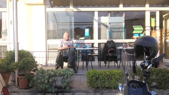 Carola Angius, die Inhaberin des B & B Vesta affittacamere erwartet uns bereits. Rolf kann das Motorrad in den schönen Garten fahren, so dass es sicher untergebracht ist. Uns gefallen das Haus und unser Zimmer sehr gut. Mit viel Liebe und schönen Dekorationen eingerichtet, im Stil der Provence. Ganz herrlich. Rolf lädt ab, dann duschen und relaxen. Hunger haben wir keinen nach dem reichhaltigen Mittagessen bei Gaby. Wir sitzen im Garten und lassen den schönen Tag ausklingen bei einem Glas Wein.