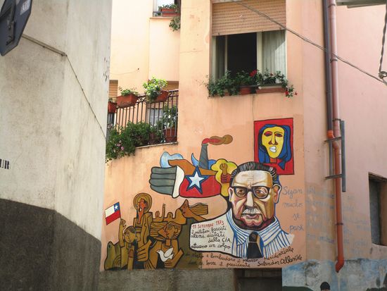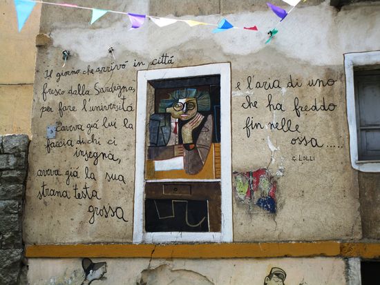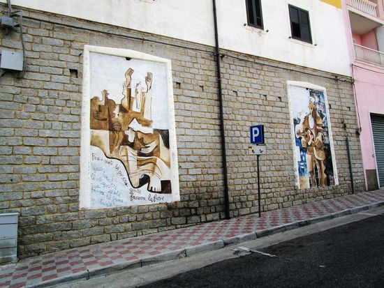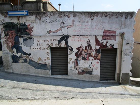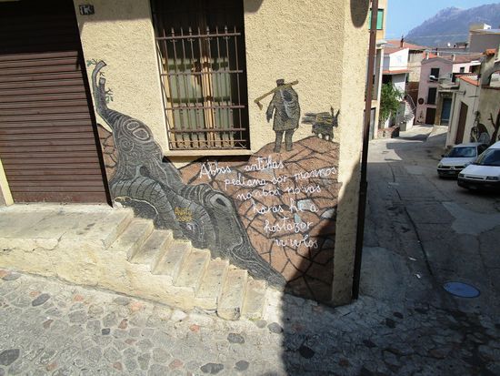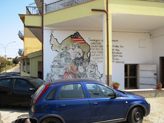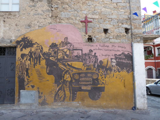 Murales – stummer Protest an den Hauwänden. Die naiven politischen Wandbilder und Fassadenmalereien, für die einige Orte auf Sardinien berühmt sind, haben Unterdrückung, Ausbeutung und Ungerechtigkeit zum Thema. Seit Ende der 1960er Jahre schmücken sie die Hauswände in Orgosolo, Oliena und vielen anderen Orten. Sie berichten in Bildern und Schriftzügen von der jahrtausendealten Problematik Sardiniens. Ihren Ursprung haben die Murales in San Sperate und nicht in Orgosolo.