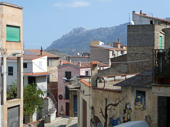 Orgosolo, ca. 4.000 Einwohner. Der Ort liegt im Zentrum des zerklüfteten Supramonte-Gebirges im Herzen der Barbagia. Über dem Ort erhebt sich der Monte Lisorgoni, 978 m.