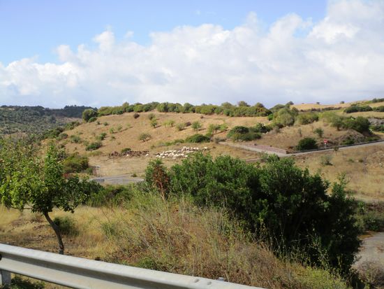 Schön sind die vielen Olivenbäume und Kakteen am Straßenrand. Viele Schafe sind heute auch mal wieder unterwegs.