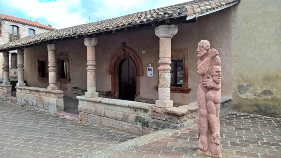 Erster Halt am Casa Aragonese. Heute am Montag ist das Haus leider geschlossen. Wir werden nochmals wiederkommen, damit ich es anschauen kann. Einige Bilder von außen werden geschossen. Schön auch hier wieder die Info-Tafeln. Ich bin immer total begeistert davon. Rolf ist besonders von den schönen Kapitellen fasziniert und er entdeckt eine Jakobsmuschel am Portal des schönen Hauses.