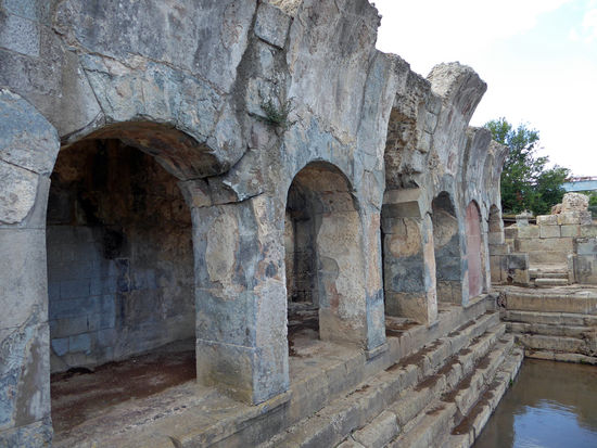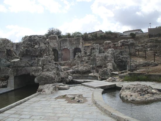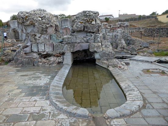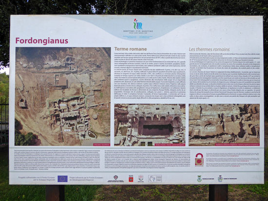 Der am rechten Ufer des Flusses Tirso gelegene römische Stützpunkt Fordongianus war zu antiken Zeiten eine bedeutende Siedlung, die zum Schutz vor aufständischen Barbaren errichtet wurde. Das immer noch aus der Thermalquelle sprudelnde, 54 Grad Celsius heiße Wasser war Grund genug, um im 1. Jahrhundert v. Chr. ein für damalige Verhältnisse beeindruckendes Bad zu errichten, das zuerst „Aquae Ypsitanae“ und später unter der Herrschaft Trajans „Terme Traiani“ genannt wurde. Im 2. Jahrhundert wurde die Thermalanlage vergrößert, und man kann heute noch die einzelnen Abteilungen, wie Frigidarium, Tepidarium und Calidarum bewundern. Ein weit verzweigtes Netz von Wasserrohren und Abflussgräben speiste neben dem Bad auch noch diverse Brunnen und Zisternen.