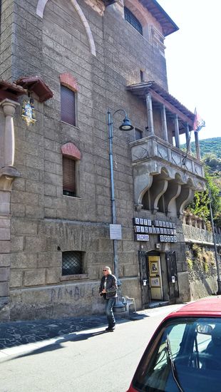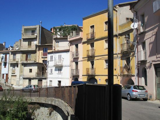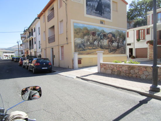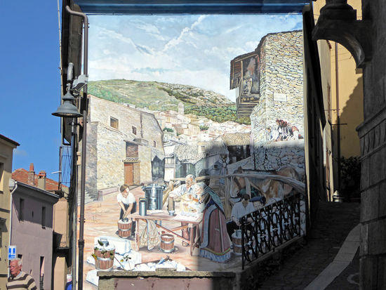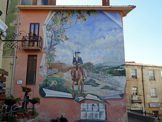 Dort ist unser erster Halt, nicht nur um einige Süßigkeiten einzukaufen, sondern um uns den Ort anzusehen. Sehenswert sind in diesem kleinen Ort die Murales, die Pfarrkirche San Michele Arcangelo und natürlich das Castello Arangino (20. Jh.), in neugotischem Stil, welches sich in Privatbesitz befindet.
