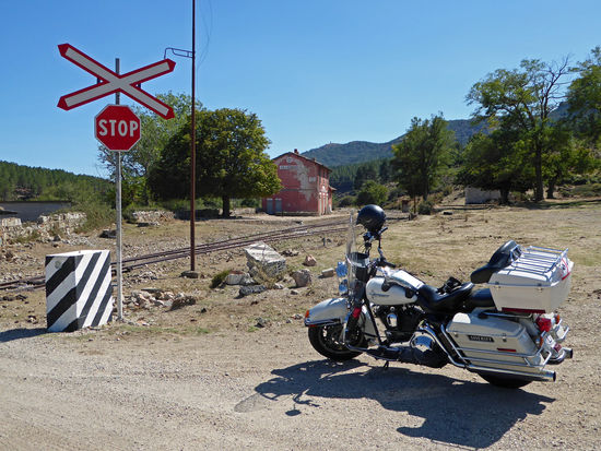 An einem entlegenen Bahnübergang weiter auf SS 389 Richtung Nuoro. Hier wollten wir abbiegen über Passo di Caravai, Richtung Fonni. Ein Stück der Strecke können wir fahren, doch dann ist die Straße gesperrt.