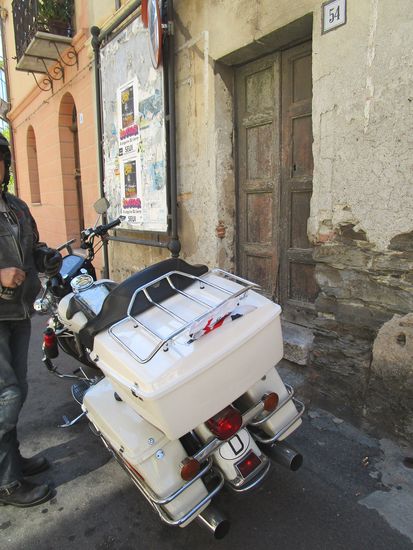 Was völlig unverständlich ist, wieso man in diesem Bergdorf zahlreiche Asylanten (Schwarzafrikaner) in einem alten Hotel untergebracht hat. Während Rolf das Motorrad holt, halte ich ein Schwätzchen mit zwei jungen Frauen, die sich darüber bitter beklagen. Sie schimpfen auf den „Stronzo Boldrini“. Die Steuern würden erhöht beklagen sie sich, vor allem um die Kosten für diese Zugereisten zu decken.