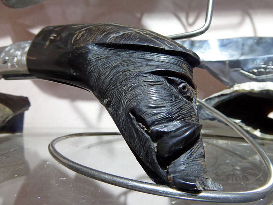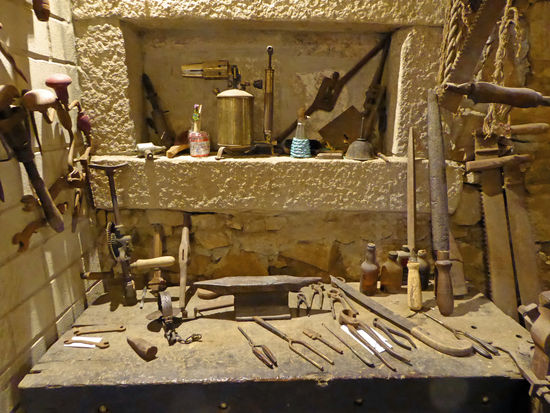 Ein Schild steht da, etwas mit Fotografieren. Wir schauen nicht näher hin, denken, wir dürfen nicht fotografieren. Doch alle die interessanten Dinge, die zu sehen sind und nicht fotografieren? Also frage ich Paolo, ob wir nicht doch Fotos machen können … Er lacht und meint, wir hätten das Schild nicht richtig angeschaut. Dort steht nämlich, es ist verboten, nicht zu fotografieren! Wir lachen auch und sind froh, dass wir los legen können. Rolf und ich, wir mögen Messer und haben schon einige in unserer Sammlung Zuhause. In diesem Museum kann man Messer jeder Art und Preisklasse erwerben, alles Handarbeit vom Feinsten. Paolo zeigt uns seine Werkstatt, erklärt alles bis ins Detail.
