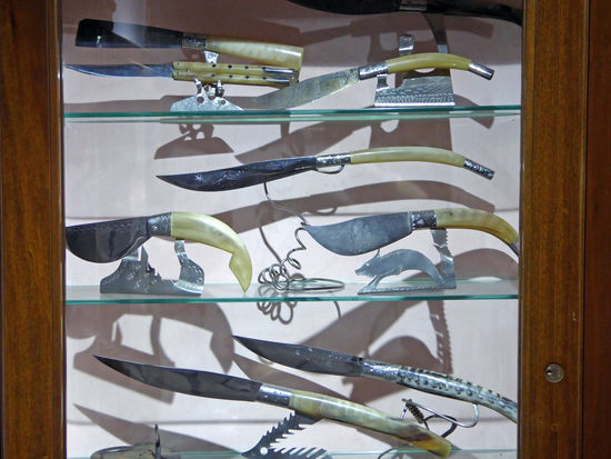Wir wandern weiter durch die steilen, engen Gassen bis hin zum privaten Museo del Coltello von Paolo Pusceddu, der uns heute persönlich begrüßt. Außer uns ist niemand da, sich das schöne Museum anzusehen. Der Eintritt ist frei, aber ich denke, jeder, der hierher kommt, kauft auch etwas.