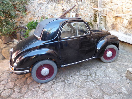Draußen im Hof steht noch ein altes Auto, keine Ahnung, welche Marke, aber es sieht toll aus.