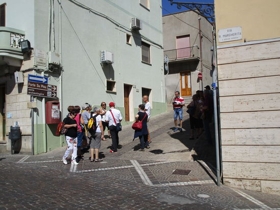 Während Rolf sich umschaut, gehe ich in eine nahe Apotheke mir Tabletten gegen Reiseübelkeit besorgen. Morgen wollen wir mit Ornellas Auto nach Villaperuccio zu Daniela Crisoni fahren, eine Kurve nach der anderen. Im Auto wird mir da schlecht. Also vorbeugen mit Tabletten gegen Reiseübelkeit.